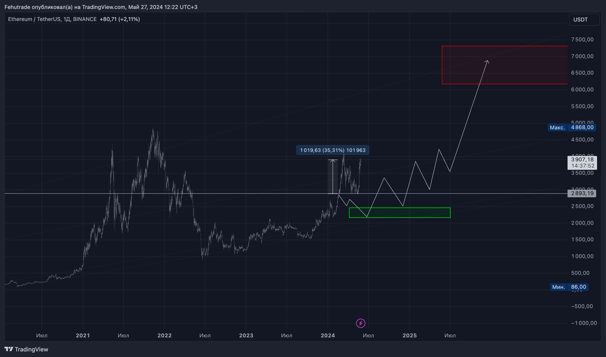 Обновляю свою торговую идею по ETH от 20.02.24. На момент публикации цена ETH составляла 2893$, с самой идеей можно ознакомить по ссылке. Что мы имеем на данный момент? Это 35% профита на споте, с чем я и поздравлю тех, кто открыл эту сделку. Перейдем к разбору Огромное количество людей начали форсить ситуацию с принятием ETF, но так и не разобрались в ситуации. Существует целый набор бюрократических правил и одобрений для принятия того или иного события, ETH ETF не стал исключением. Конгресс США выступает в виде бульдозера, который пушит идею ETF для SEC. На сегодня мы знаем, что приняли форму 19b-4s и эта форма только запускает процесс принятия, который затянется. Финалом этой ситуации должно стать принятие и одобрение формы S-1s, которая и запустит все котировки связанные с ETH ETF, а пока этого не произошло мы будем наблюдать большое количество новых вбросов и манипуляций. Я считаю, что ETH ETF будет принят, но не так быстро как хотелось бы. Все будет упираться в концепцию циклов