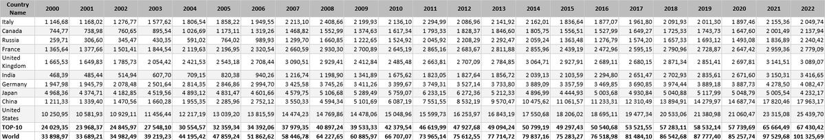 Номинальный ВВП 10 стран с самыми крупными показателями: мировые тенденции и ключевые игроки с 2000 года по 2022 год