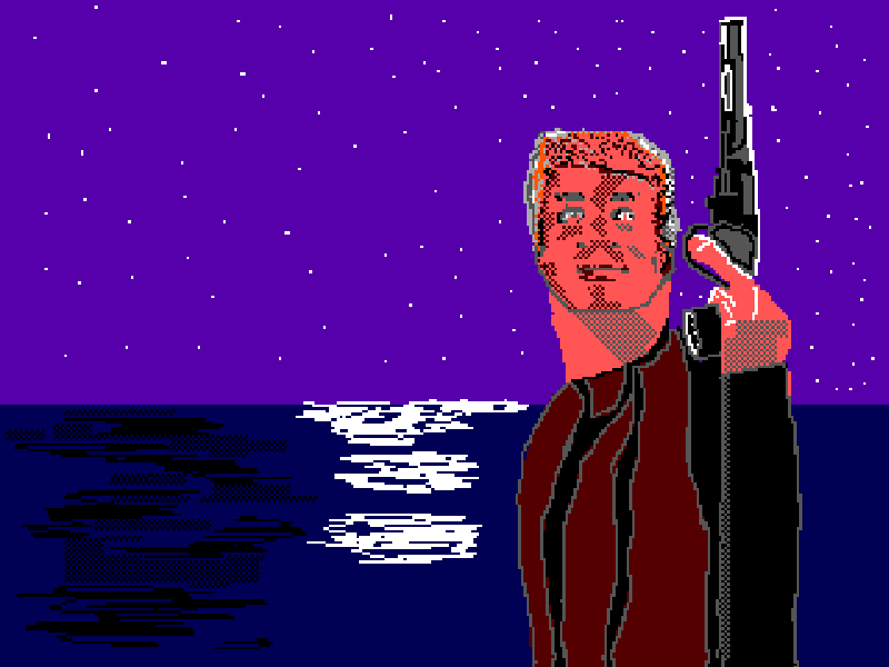Пиксель арт на сегодня по мотивам видеоигры Project Ice Man для платформы IBM PC MS DOS. Я точно не знаю, что это за игра по жанру. Возможно, это квест. В первой половине 90ых их было очень много, это был популярный жанр Пойнт и Клик приключений. А может быть стрелялка типа первых двух Дюк Нукемов. Может быть, там какая-то история такая, как фильм. А это мой рисунок на подобную тему. Как бы оригинальная игра называется проект Ледяной человек. То я вот придумал название такое. Холодный как лед. Тоже. Вот. Море. Человек. История связанная со льдами. Корабль плыл в мир снега. В Антарктиду. И там научное и грузовое судно должно было выгузить груз и доставить его на станцию во льдах. Но корабль затонул при странных обстоятельствах у берегов. Судно в воде. Но оно не ушло под воду полностью. Корабль сел на мель. Это огромный грузовой корабль. С кучей контейнеров на борту. С научным грузом. Ты морской полицейский. Отправляешься быстро это все изучить. И узнать почему так произошло. Твой быстры
