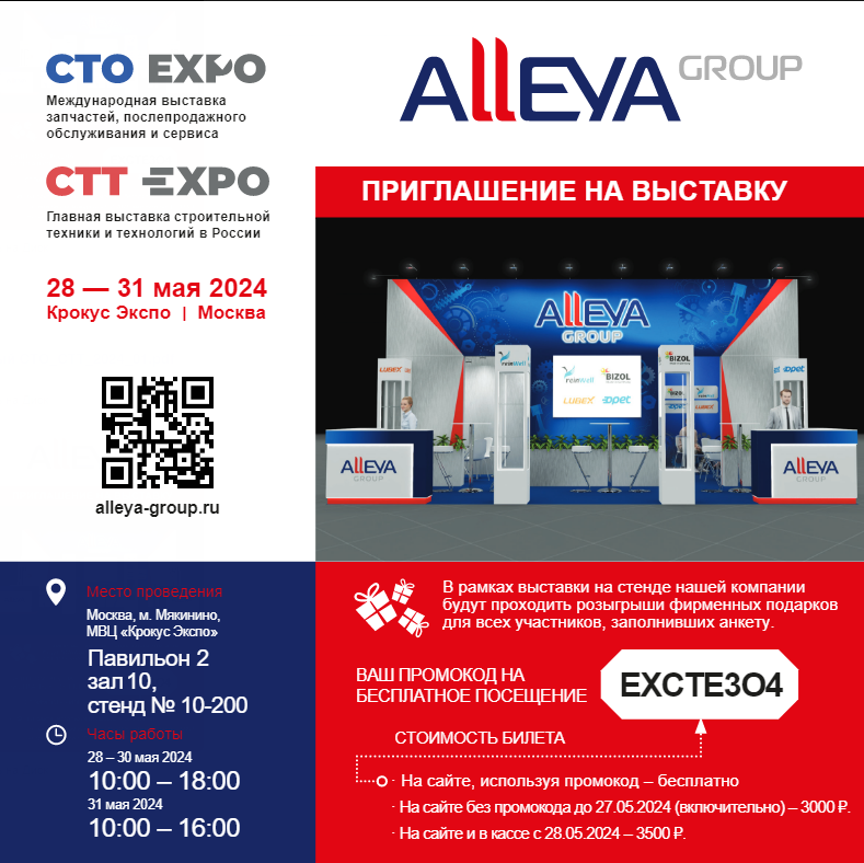 Приглашаем друзей и партнеров на стенд «Аллея групп» с 28 по 31 мая в рамках выставки СТО Expo. В этом году мы представим новинки продукции и хорошо зарекомендовавшие себя продукты. Каждый день на стенде будут работать технические специалисты, чтобы помочь подобрать оптимальную автохимию и смазочные материалы под ваши конкретные задачи - продажи, обслуживание техники, личные нужды или любые другие. В рамках выставки можно будет лично пообщаться с нашими сотрудниками и обсудить индивидуальные условия сотрудничества. И приятный бонус, чтобы заглянуть к нам: мы будем проводить розыгрыши фирменных подарков среди гостей, заполнивших анкету. Будем рады вас видеть! Павильон 2, зал 10, стенд №10-200. Получить бесплатный билет можно про промокоду EXCTE3O4 при онлайн регистрации. CTO Expo – международная выставка запчастей, послепродажного обслуживания и сервиса. Выставка предоставляет возможность найти покупателей товаров и услуг для всех видов автотранспорта: легкового, грузового и строите