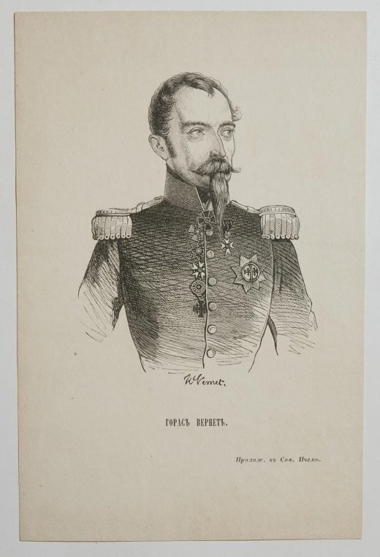 В Государственном Русском музее в Санкт-Петербурге хранится ксилография, представляющая собой мужской портрет с подписью «Горасъ Вернетъ». Точнее, подписи на портрете даже три – под самим изображением авторская – «H.Vernet», а в самом низу – «Прилож к Сев. Пчеле». Датирована ксилография в музее 1849 г. (хотя на самом портрете дата отсутствует), а личность портретируемого авторы музейной аннотации определили на гипотетической основе как французского императора Наполеона III. Со знаком вопроса в скобках Разумеется, просвещенным читателям не нужно объяснять, что Орас (Горас, Гораций) Верне (Вернет) – это известный французский художник, представитель целой династии художников с такой фамилией, а «Северная пчела» - это выходившая в Санкт-Петербурге газета, иллюстративным приложением к которой является рассматриваемый портрет. На Наполеона III персонаж портрета похож, чего уж там. И французским мундиром, и усами, и бородкой, и мешками под глазами. Вот только у императора французов при всем