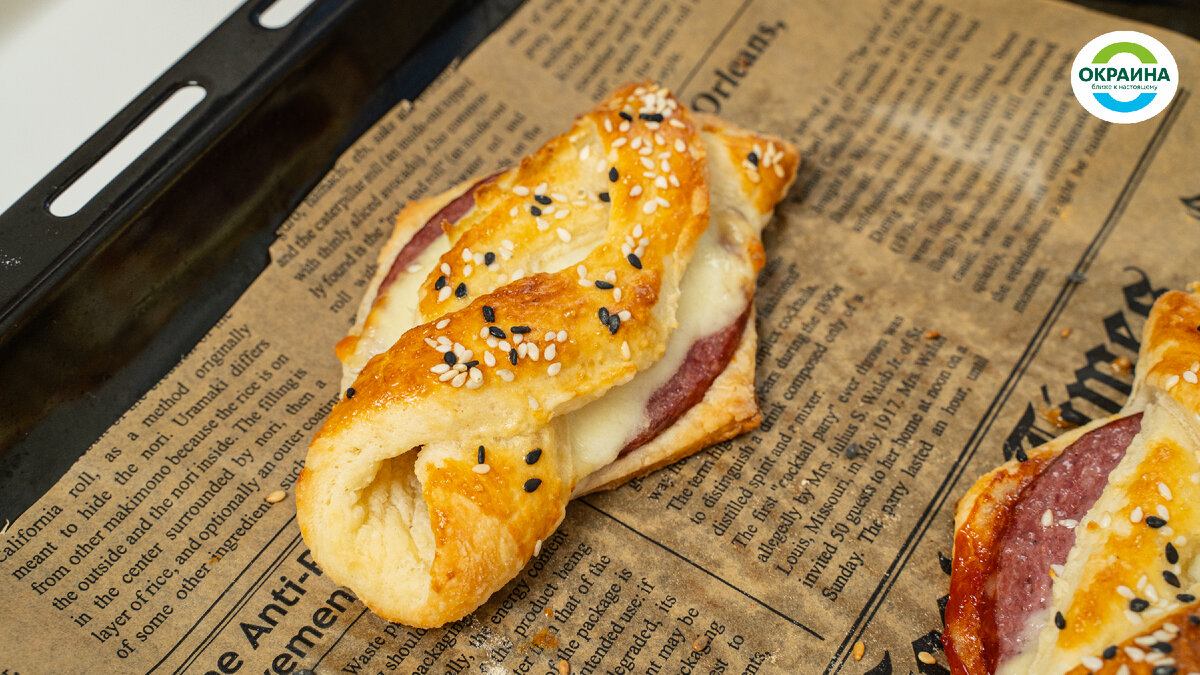 1. Достанем тесто и дадим постоять. Обычно это занимает около 1/1.5 часа. Лучше сделать это заранее. 2. Раскатываем тесто и с помощью подручных средств делаем большие кольца. 3. Делаем 2 надреза, как на фото №5. Добавляем кетчуп, колбасу Богородскую Окраина варено-копченую, сыр. 4. Складываем в конвертик, как показано на фото №8. Взбиваем 1 яйцо и тонким слоем наносим на конвертик. В конце добавим кунжут. 5. Теперь в духовку на 7-10 минут при 180 гр. Не забывайте следить за готовностью. 6. Готово! Приятного аппетита!