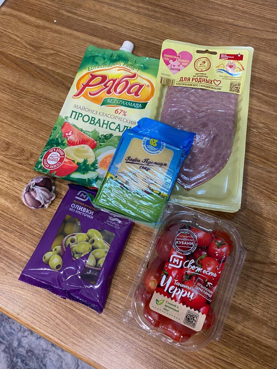 Предлагаю порадовать себя и гостей простыми, но очень вкусными рулетиками из ветчины, для которых нам понадобится минимум продуктов: Ломтики ветчины – 5 шт. Помидорки черри – 2 шт. Зубчик чеснока – 1 шт. Майонез – 1 столовая ложка. Оливки – 5 шт. Твердый сыр. Способ приготовления очень простой и делается быстрее чем варятся макароны: Сыр натираем на крупной терке в отдельную глубокую тарелку, туда же натираем чеснок уже на мелкой терке и добавляем майонез. Должная получиться кашеобразная консистенция, если майонеза мало можно добавить еще главное не переборщить. Далее разрезаем помидоры на четвертинки, вы можете разрезать как Вам нравится. После того как все ингредиенты подготовлены мы начинаем собирать наш рулет. Ломтик ветчины кладем на чистую поверхность в середину кладем нашу начинку далее заворачиваем. На шпажку надеваем помидор, оливку и фиксируем на рулетике. Наша закуска готова. Приятного аппетита.😋🧑🍳