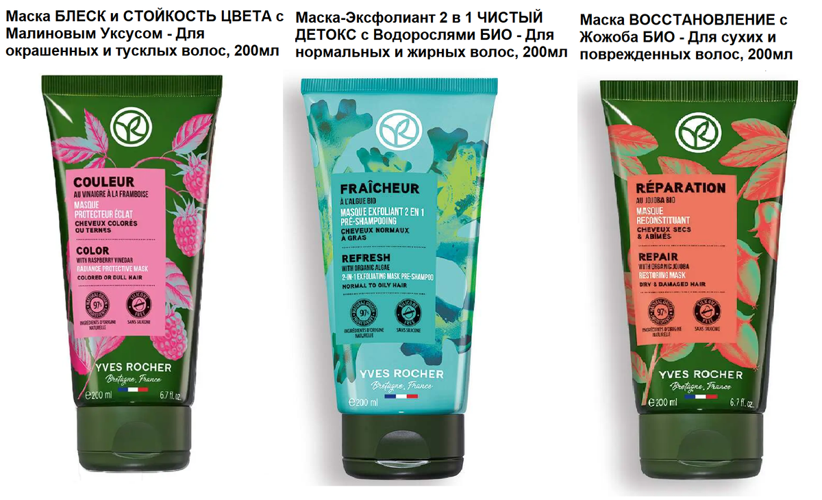 Я- давний поклонник продукции Ив Роше и регулярно делаю заказы через бланки или на сайте компании, стараюсь не упускать возможности приобрести продукцию по выгодным акциям в бутиках. А информацией об акциях я активно делюсь на своем канале Мои отзывы о продуктах всегда искренние, бренд Ив Роше мне не платит за рекламу, поэтому в каждой моей публикации только моё личное мнение. Всем привет! В какой-то период времени я забросила уход за волосами. Использовала только шампунь и кондиционер .Несложно догадаться, что вскоре начались проблемы с волосами... Я заметила, что они очень сухие, ломкие, жесткие. Поэтому решила срочно заказать маску. На сайте Ив Роше выбор не очень велик- всего 3 варианта. Но я решила, что начну с маски с малиновым уксусом, так как у меня в использовании и в запасах шампунь и кондиционер этой серии. Но со временем я попробую и остальные маски, очень меня заинтересовала Маска-эксфолиант и я её уже заказала по бланку Марта. Итак, делюсь отзывом на Маску блеск и стойко