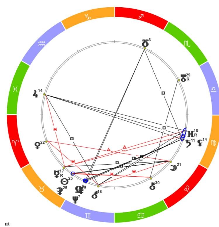 Гениальность и фатализм писателя обусловлены этими аспектами, но ещё и влиянием Урана и Хирона на ядро личности☄️. Из-за напряжения между ними гениальность балансирует на самой грани с эксцентричностью (и даже сумасшествием) как у самого автора, так и у его героев. Это очень красивый аспект (с точки зрения астрологии😁) остроумного гения, совмещающего несовместимое, приподнимающее парадоксы как норму.