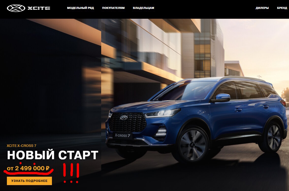 Как только в РФ появились сведения, что стартует новая марка Xcite, я долго не мог понять, почему у марки нет официального сайта!? Но сегодня он появился, да еще и опубликовал официальный ценник на кроссовер X-cross 7 питерской сборки. Если кому интересно, сайт называется xcite-avto.ru Итак, стоимость нового "отечественного" кроссовера X-cross 7 составляет 2 499 000 рублей! Для сравнения, заглянул на маркетплейс ОЗОН. Там брат близнец "нашего" ХКросс 7 - Chery Tiggo 7 Pro Max 1.6T DCT Prestige 2024 модельного года предлагается за 2 510 000 рублей! То есть разница составляет всего 11 000 тысяч рублей. Вы спросите, чем же машины отличаются? Ведь на вид Xcite X-cross 7 и Chery Tiggo 7 Pro Max совершенно одинаковы, если не считать шильдика. Стоит ли переплачивать невероятно большую сумму в 11 тысяч рублей??? А для этого нужно заглянуть под капот, собственно вся разница скрыта именно там. У X-cross 7 стоит 1.5 литровый турбомотор мощностью 147 л.с. и бесступенчатый вариатор CVT. А в Tiggo
