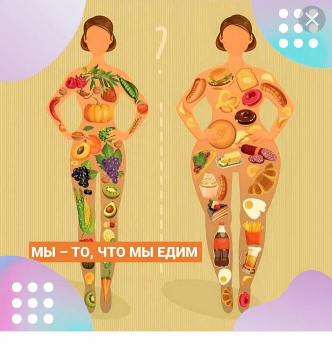 Как часто вы слышали от окружающих: "Мы - то, что мы едим". Давайте вместе подумаем, на сколько правильно данное суждение. Чисто теоретически, конечно так оно и есть. Напичкай себя "фаст-фудом" и прочими "чипсами" и "колами" и вот ты уже круглый, как воздушный шар. А вот при потреблении большего количества фруктов и овощей, разнообразных каш и супов, ты можешь похвастаться прекрасной фигурой. На самом деле, всё не совсем так просто. Каждый должен понимать, что в первую очередь нужно во всём знать меру. А также, как было сказано в предыдущих статьях должна быть сбалансированная еда и в каждой порции нужное количество витаминов, важных для организма. Ведь если ты кушаешь овощной суп, но при этом заедаешь его огромным количеством хлеба с майонезом, о пользе здесь мало, что можно говорить. И если ты при прогулке с друзьями раз в месяц решишь выпить бутылочку колы, она не принесёт в результате лишних 5 кг. Сейчас я хочу донести простым языком, что важно любить в первую очередь себя и ко