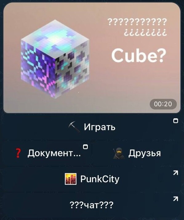 Cubes — это игровой проект, в котором для фарма необходимо ломать кубы киркой, при этом графика в игре «шейдерная», подобная «Майнкрафту». Но вместо алмазов в Cubes представлены загадочные кубы с вопросительными знаками. Эти кубы накапливаются отдельно, а обычные (без вопросительных знаков) распадаются в капли, которые являются валютой для покупки энергии. Вся игра построена на таинственности, и при этом даже официальные документы проекта все с вопросительными знаками — такая уж стилистика и задумка создателей. При этом в главном чате разработчиков Cubes также нет ни одного ответа, связанного с документацией. Но самое важное, что необходимо знать криптосообществу, известно — 06.06.2024 будут результаты airdrop на $30 000 в монетах $PUNK! Суть в том, что те игроки, у кого получилось добыть хоть один загадочный блок (со знаком вопроса), могут получить бесплатно токены $PUNK. Важные условия для получения airdrop Активировать телеграм-бот Cubes. Во вкладке «Браузер» в самой первой карусели