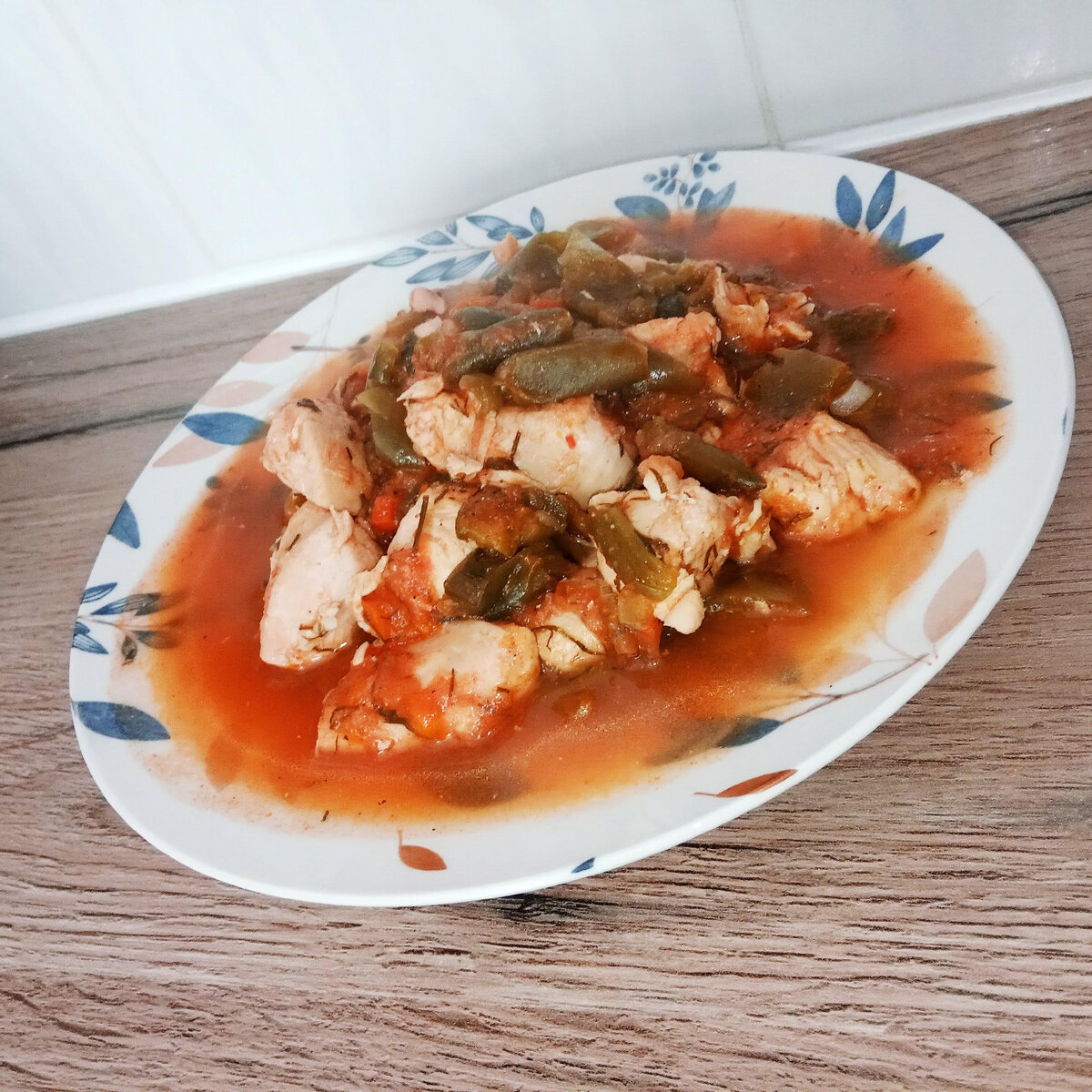 Начинается летний сезон, а значит нужно подготовить место в морозилке. Заморозки я делаю каждый год, замораживаю ягоды, некоторые фрукты и овощи. Сегодня буду готовить из домашних замороженных овощей, но можно использовать и те что из магазина, главное чтобы овощи не были переморожены. Для рагу я на дно кастрюли вливаю растительное масло, разогреваю и в это время режу куриную грудку без кожи на небольшие кусочки, в масло выкладываю его. Мясо обжариваю и добавляю к нему кабачки, у меня нарезанные кубиками, следом идет стручковая фасоль тоже замороженная. Закрываю крышку и тушу минут 15. Затем добавляю сладкий перец, у меня он тоже из запасов заморозок. Продолжаю тушить около 10 минут. Затем вливаю в рагу поллитра томатного сока, да и он у меня домашний, но с магазинным получается не хуже. Как вариант добавить воды и томатной пасты. На этом этапе кладу соль и специи, я использую черный молотый перец и паприку. Накрываю крышкой, после закипания убавляю и оставляю тушиться на 20-25 мину