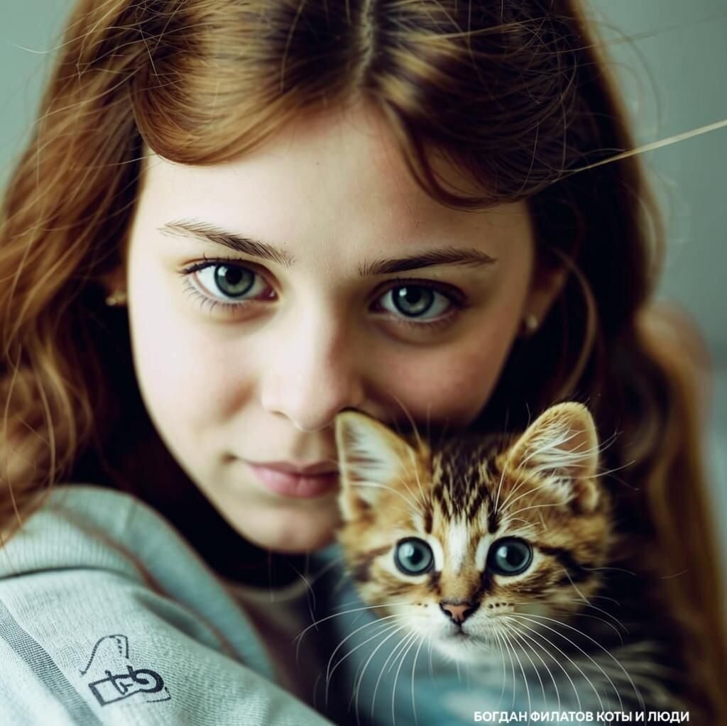А девушка эта держала котёнка -
