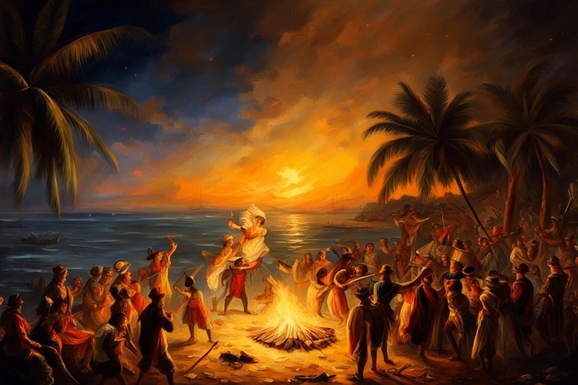 Вождь не смог поверить глазам Когда средь прибывших увидел Купца. Он когда-то был с ним знаком, Но не виделся с давних времён, С тех пор, когда остров был в такой фазе, Что лишь зарождались торговые связи. Купца с радушием в этот же вечер За стол пригласил отпраздновать встречу.