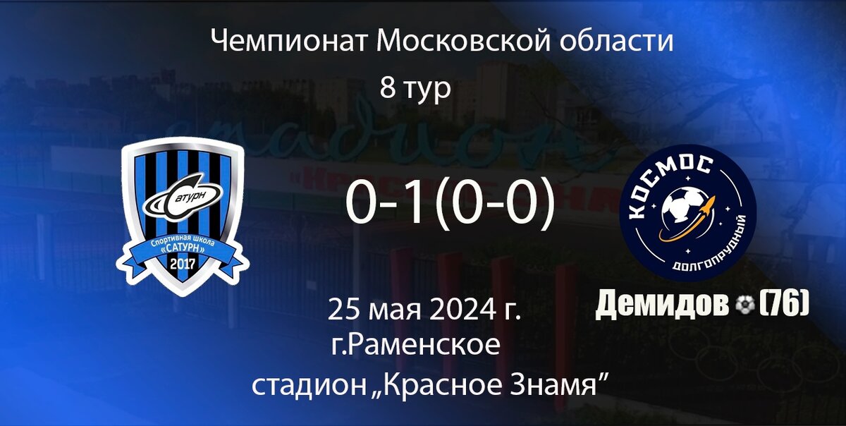 В очередном матче Чемпионата молодёжная команда СШ «Сатурн» принимала на своём поле вторую команду «Космоса» из Долгопрудного и уступила со счётом 0:1. Обе команды начали матч осторожно, присматриваясь друг к другу. Лишь на 13-й минуте встречи гости создали первый опасный момент: голкипер СШ «Сатурн» Константин Лобанов допустил небольшую ошибку при игре на выходе в своей штрафной, однако Павел Кузьминов пробил мимо створа ворот хозяев. Через десять минут футболисты СШ «Сатурн» ответили ударом новобранца команды Кантемира Мамхегова, который был заблокирован защитником «Космоса-2». На 36-й минуте Даниил Дёмин замыкал головой навес Артёма Леонтьева и направил мяч мимо ворот. Ближе к концу тайма гостей спас вратарь, зафиксировавший мяч после удара головой от Артёма Леонтьева после подачи Александра Ряднова. Второй тайм активнее начали гости. В одном из моментов Константин Лобанов уверенно сыграл за пределами штрафной, предотвратив выход один на один. Затем были еще несколько подходов к вор