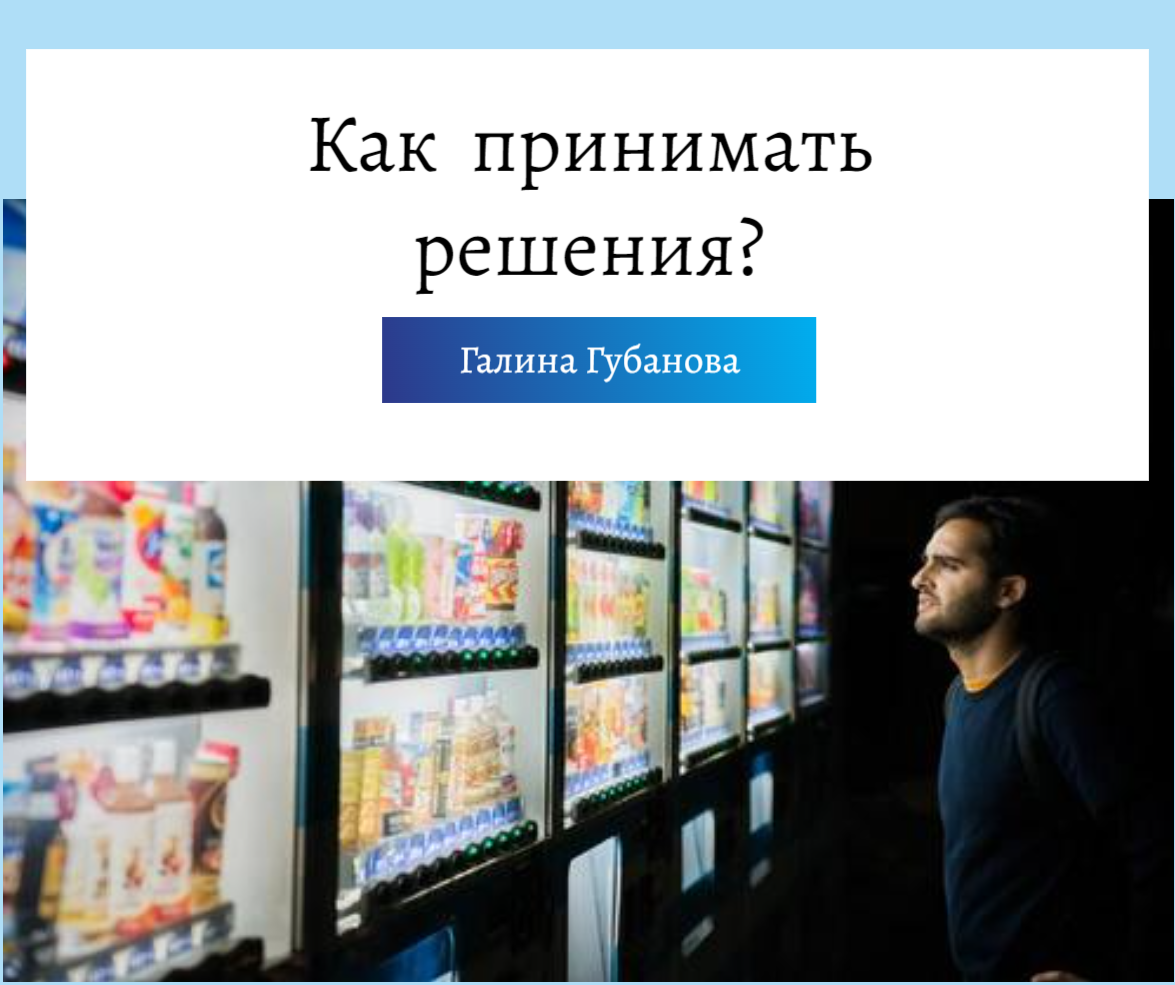 Есть решения стратегически значимые, а есть решения, которые можно принимать почти автоматически или просто достаточно быстро. Что надеть сегодня на работу? Какое молоко взять в магазине? Позвонить или написать на емайл? Посмотреть старую комедию или новую серию сериала? Если Вы хотите ускорить процесс принятия решений, но при этом не потерять в их качестве, то эта статья может быть полезной. Принимая решения, мы запускаем когнитивные, волевые и эмоциональные процессы. Потенциал для ускорения может прятаться в каждом из них. На уровне эмоций быстрому принятию решений мешают страх неудачи и страх совершить ошибку, а иногда даже страх успеха и социальные страхи. Страх запускает прокрастинацию или бесконечное взвешивание «за и против». Проработать эти страхи можно либо волевым усилием, либо на встречах с психологом. В первом случае Вы принимаете решение и потом эмоционально проживаете его результат. Постепенно психика привыкнет к тому, что даже неудачное решение – это не конец света. Есл
