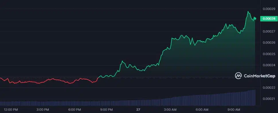 Сектор мемкойнов вновь набирает популярность на крипторынках, демонстрируя впечатляющие результаты и значительный рост. Среди наиболее заметных победителей сегодня - Floki (FLOKI), dogwifhat (WIF) и BONK, каждая из которых показывает значительное повышение цен и привлекает внимание рынка. FLOKI: Лидер с ростом на 21% Floki (FLOKI) является лидером дня, поднявшись на 21% до $0.0002813. Этот скачок цен произошел после пробоя горизонтального уровня на отметке $0.00023 и последующего преодоления ключевого сопротивления на $0.00025. В настоящее время FLOKI приближается к своему историческому максимуму $0.0003, согласно данным CoinMarketCap. Рост цен во многом связан с запуском торгового бота на базе Telegram для держателей FLOKI в сети BNB Chain. Ожидается, что этот бот увеличит спрос на токены FLOKI, способствуя покупательскому давлению. За использование бота будет взиматься комиссия в размере 1%, половина которой будет использована для покупки FLOKI на открытом рынке. Дополнительные факто