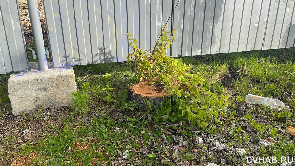 Речь идет о деревьях, что росли рядом с остановкой «Краевой музыкальный театр», где еще недавно стоял сгоревший барак. В прошлом году ветхое строение снесли, территорию обнесли забором, и началась застройка участка. Все это время прямо под забором росло дерево, которое красиво цвело весной. На днях хабаровчане заметили, что его больше нет.