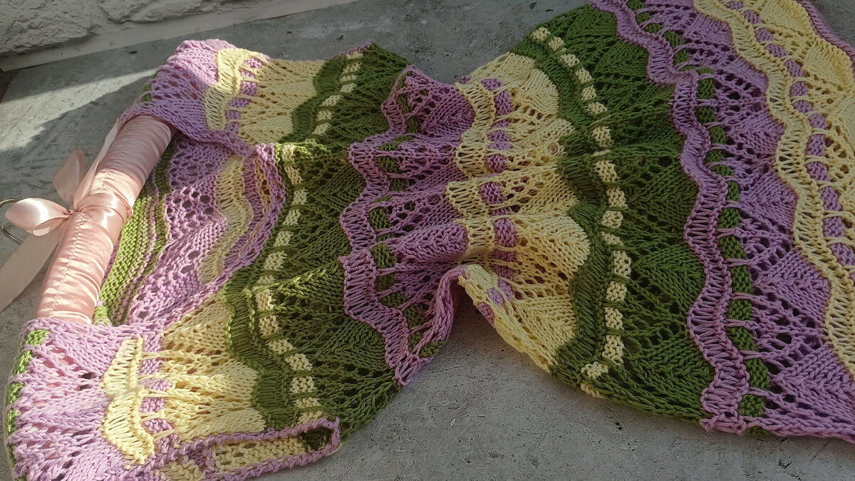 🌞Лето, как обычно, наступило в тот момент, когда на спицах был теплый процесс. Не теплый-теплый, а весенний джемпер, из пряжи шерсть+хлопок. С узором, который проник в самое сердце, увидев его лишь мельком. Мне кажется этот узор специально создан для цветного вязания. Схему составила по фото, рисунок очень простой. Связала только корпус джемпера, на рукава не хватило мужества - вязать, когда за окном +25 и требуются летние топы. Но рисунок не хотелось оставлять надолго, вот и пришла идея связать топ для дочки. А джемпер пусть пока отдохнет от летнего зноя. Пряжа Артикул "Нежный хлопок" от Атрико, выбран мной, но подарен моей зрительницей Юлей. Это натуральный состав обалденного качества. в мотке 50 грамм и 145 м и это идеально для летних моделей. У меня было по 2 мотка каждого цвета, и их вполне хватает на топ 44 размера с остатком. Расход 180 г. При чём зелёного цвета остался нетронутый моток🤷♀️ Ход работы Набрала 168 петель на спицы 3,0 для кругового вязания снизу. Вязала 14