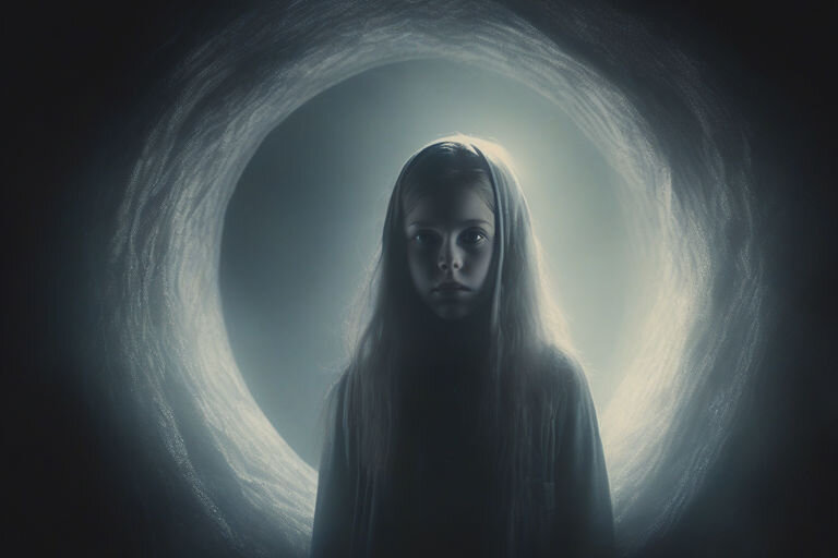 Потом я услышал вдали громкий волчий вой. Серые тени стали подниматься из-под земли, призрачные облака окружили меня. Теперь уже я реально испугался, я хотел бежать, но ноги меня не слушались. Ужас охватил меня. А потом над одной из могил разверзлась черная дыра, и из нее ко мне шагнула призрачная девочка, на вид ей было лет тринадцать. Девочка коснулась моего лица прозрачными руками, и я провалился во тьму.