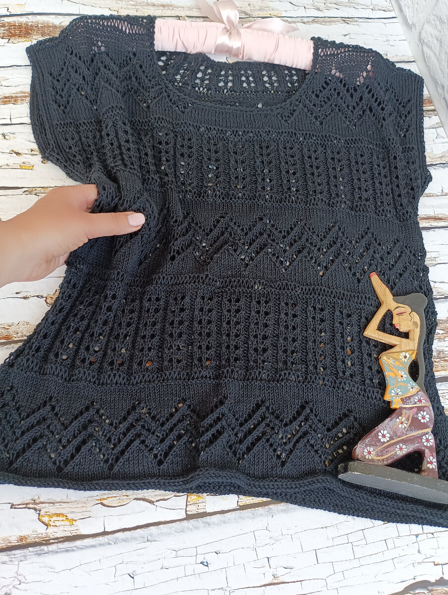 Привет моя читающая аудитория! 📚📖Интересно, среди моих подписчиков на Дзен, тех кто активно интересуется вязанием и черпает вдохновение, больше зрителей или читателей? Напишите в комментариях, в каком виде информация заходит лучше? Конечно, разные схемки и эскизы на видео разглядеть не реально, за ними все равно надо заглядывать в статью. А вот цепляет что сильнее, увиденное или прочитанное? Самой мне пока одинаково нравится создавать и тот и другой контент. А все потому, что обожаю вязать, а с началом блогерской деятельности страсть стала еще сильнее. Мозг включил турборежим и генерирует идеи⚡⚡⚡, только успевай воплощать. Чему я непременно рада.😄 Протестировав новую для меня пряжу «Бамбук» от Атрико получила в свой гардероб замечательный топ КВЕСТ. Я сознательно решилась на такой экзерсис – вязать тоненькую пряжу на спицах 2,5 да еще в черном цвете – не что иное, как Квест. Но была уверенность, что мои мучения будут не зря, модель обещала быть волшебной. Так и случилось.👌 В мотке