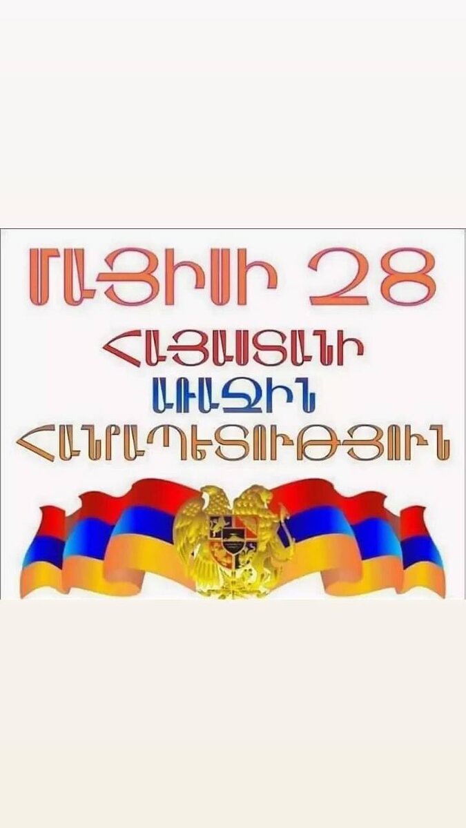 1918 թվականի մայիսի 28-ին երկար ու դժվարին ընդմիջումից հետո վերականգնվեց հայոց պետականությունը։ 1918 թվականի մայիսին հայ ժողովուրդը կարողացավ ոտքի կանգնել և արժանի հակահարված տալ թշնամուն՝ ապացուցելով անկախության և ազատության իր իրավունքը։ Պատմությունը մեզ համար ամեն ինչ է։ Մեզ համար, յուրաքանչյուր հայի համար, որպեսզի պահպանենք հայրենասիրությունը և չկորցնենք հավատը, ոտքի կանգնենք, ցույց տանք և ապացուցենք մեր հերոսական ոգին թշնամուն, և որ ամենակարևորը պետք է համախմբվի ողջ հայ ժողովուրդը, որտեղ էլ որ նա ապրի։ Համոզված եմ, որ կգա ժամանակը, երբ մենք կվերադարձնենք մեր բոլոր հողերը ✊🇦🇲 🇷🇺Дорогие соотечественники! Поздравляю вас с праздником Республики! 28 мая 1918 года, после многовекового и тяжелого перерыва, была восстановлена армянская государственность. В мае 1918 году армянский народ сумел встать на ноги и дать достойный отпор врагу, доказав своё право на независимость и свободу. История для нас это всё. Для нас, для каждого армянина сохранить патриотизм и не терять веру, встать