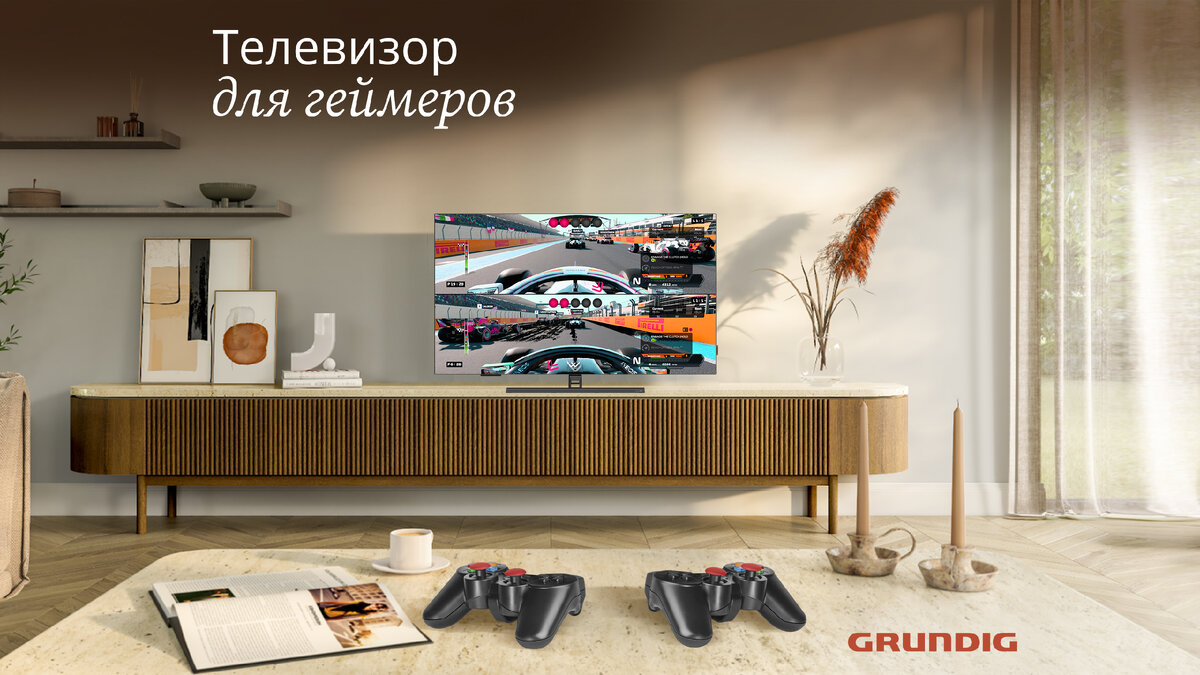 Важно и наличие в Grundig 55 OLED GH 9700 ALLM (Auto Low Latency Mode¹⁵) — автоматического режима низкой задержки входного сигнала. Он переключает телевизор в игровой режим сразу, как только обнаружен сигнал с консоли. За счёт этого обеспечивается оптимальная производительность с минимумом задержек.