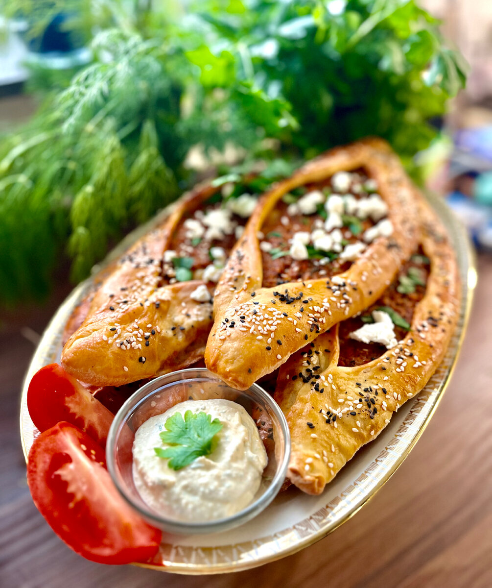 Эту выпечку я попробовала в турецком кафе. Это настолько вкусно и быстро и легко в приготовлении , что за выходные я накормила всех соседей, родственников и коллег ) Не могу не поделиться🤗 Пиде с разными вкусами ( мне больше всего нравится с говяжим фаршем)теперь можно легко приготовить самостоятельно. Выпекается из легкого дрожжевого теста, сочной начинки и пикантного сыра. ДЛЯ ДРОЖЖЕВОГО ТЕСТА Сахар 1 щепотка Теплая вода 200 мл Свежие дрожжи ок. 21 г(Пол кубика) Мука пшеничная 500 грамм Яйцо (размер М) 1 шт Соль 1½ чайной ложки Оливковое масло 100 мл немного пшеничной муки для теста ДЛЯ НАЧИНКИ Говяжий фарш 250 грамм Лук 2 шт Красный сладкий перец 1 шт Помидоры 4 шт (ок. 240 г) Стебли петрушки Чеснок 1-2 зубка Томатная паста 1 ст.л. Оливковое масло 1 ст.л. Порошок паприки 1 ч.л. Соль и перец. 1 щепотка Для смазывания выпечки- 1 желток + 2 ст.л. молока Шаг первый Смешай