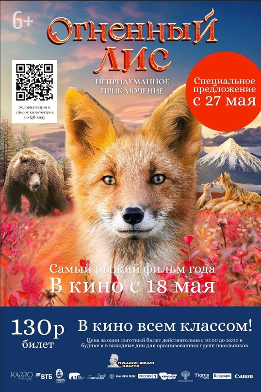 🎥В рамках социальной акции организованные группы учащихся (от 10 человек) смогут посмотреть фильм «Огненный лис» (6+) по специальной цене.