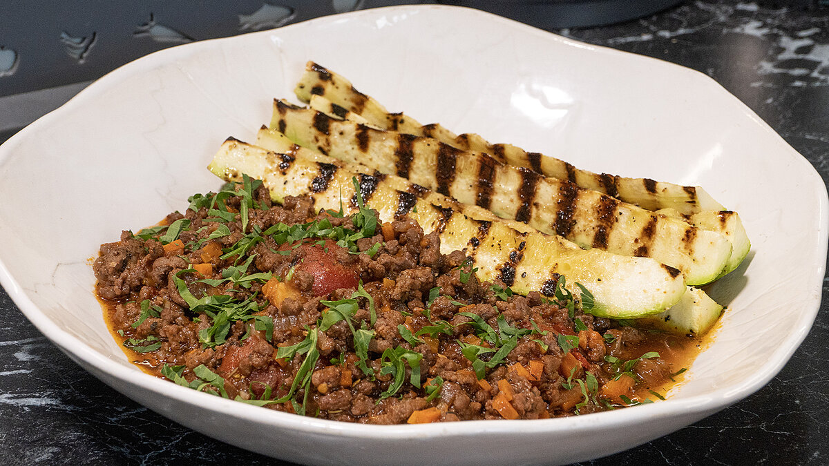 Удивительно вкусное сочетание соуса Болоньезе с обжаренными кабачками аль денте. Обязательно приготовьте по нашему рецепту и побалуйте семью вкусным и питательным ужином. Ингредиенты: Кабачки
