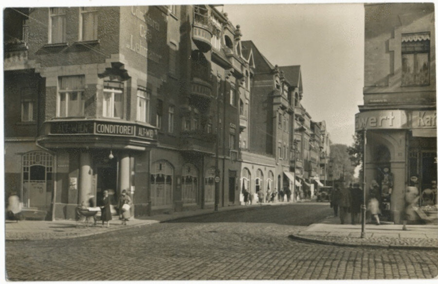 Мы с вами встречаемся в кафе «Альт-Виен» на углу Гинденбург/Беловштрассе (№20). По сути оно представляет собой большой зал в котором всегда полно народу, а вход осуществляется через угловую дверь. То место, куда направляемся мы, несколько теснее. А идём мы через буфет и спустившись на две-три ступеньки попадаем в концертный зал этого кафе. Тут всё битком. Сегодня здесь должно произойти нечто особенное, а именно оркестр Мартина Тида (Martin Thiede) устраивает бенефис и прощальный вечер. Позади оркестра на куполообразной стене висит большой золотой лавровый венок с бантом. Официант с трудом находит для нас место, которым оказывается один стул на двоих. Просто жутко неудобно. Впрочем, мы хотя бы сидим и находимся очень близко к сцене. Музыканты, со своей стороны, пребывают в очень приподнятом настроении. Это довольно странно, поскольку они должны быть печальны из-за своего скорого расставания. Но я уже слышу, что они заключили новый контракт с хозяином кафе на следующий год, а значит вернутся. Музыканты и их гости, судя по всему, хорошо знакомы и подшучивают друг над другом или сами над собой. Видимо сегодня здесь собрались завсегдатаи. В малом зале или иначе клубной комнате люди танцуют. Большие раздвижные двери широко открыты. А что именно они там танцуют? Ну конечно же вальс, фокстрот, танго, а также уанстеп и тустеп. Полицейский час (время закрытия ресторанов — Е.С.) продлили и мы могли бы развлекаться здесь до самого рассвета. Но сидеть вдвоём на одном стуле...? Поэтому мы идёт дальше! Пианист кивает нам, прощаясь.