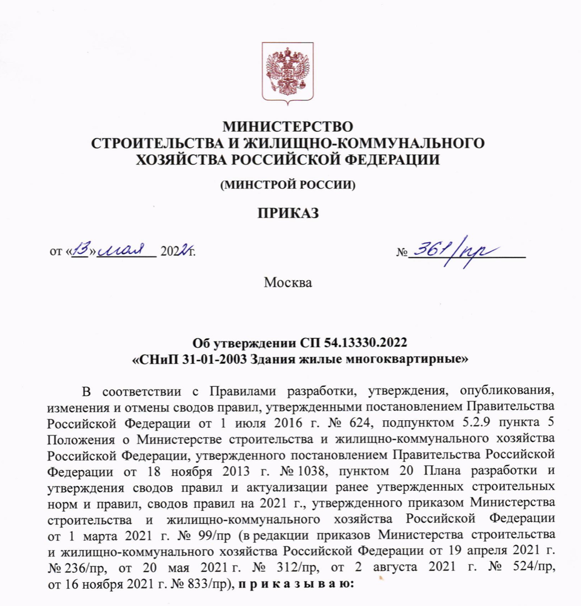 В письме отмечается, что при проектировании объектов в столице нельзя будет отклоняться