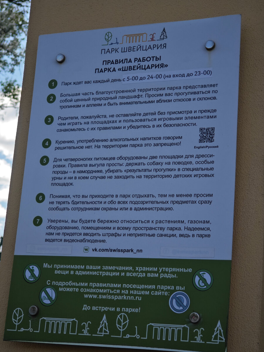 Приветствую, уважаемые читатели! Эта статья будет посвящена парку Швейцария. Стразу скажу, мы хоть и привычные к долгим прогулкам, но весь его обойти не успели. Пошли мы туда в субботу, 18-го мая, после обзорной экскурсии по городу и обеда. Сразу в глаза бросается здание детского обучающего центра. В нём встроенные горки. А наверху довольно высокий парапет, но стеклянный и можно увидеть часть территории парка. Много в парке детских площадок. Посреди одной из них огромная шишка. Фонтан - шутиха. Кстати, в тот день было довольно жарко и он радовал Есть ещё очень красивый фонтан, который в тёмное время суток подсвечивается и играет различные мелодии. Немного информации, откуда такое название взялось. Вот о таких домиках видела как-то в новостях, очень хотелось увидеть лично - мечты сбываются. А сюда люди насыпают орешки (кстати, есть таблички, чем можно кормить белок, а что им нельзя давать). Ландыши зацветают. Очень люблю эти цветы, никогда не срываю для букета (и вас прошу этого не дела