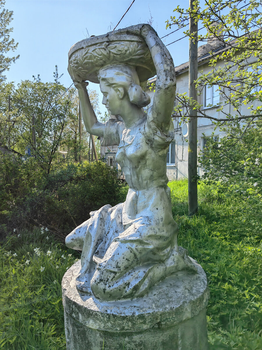Сегодня в Олонце (Карелия) во время пешеходной прогулки по городу в зелени около одного из домов я увидел советские скульптуры. На Яндекс.картах они не были отмечены. Поэтому нам показалось, что автором является кто-то из местных жителей, который создал небольшой парк, со временем уже изрядно заросший. Мы решили обратиться к местному жителю с вопросом, откуда здесь эти произведения искусства. Получили ответ, что из Городского парка Олонца. В 1960-х годах скульптуры были на месте, а потом во время реконструкции их убрали. Спустя время мы оказались в Краеведческом музее Олонца. И там увидели старую фотографию подобной скульптуры, которая, по-видимому, не сохранилась. По стилю, и правда, напоминает девушку в траве у дома. Была в музее и другая фотография Городского парка. На выходе с экспозиции я решили поинтересоваться, сохранились ли скульптуры из Городского парка. В надежде на то, что нам подскажут другое место, куда перенесли остальные, не увиденные нами композиции. Но в ответ услы