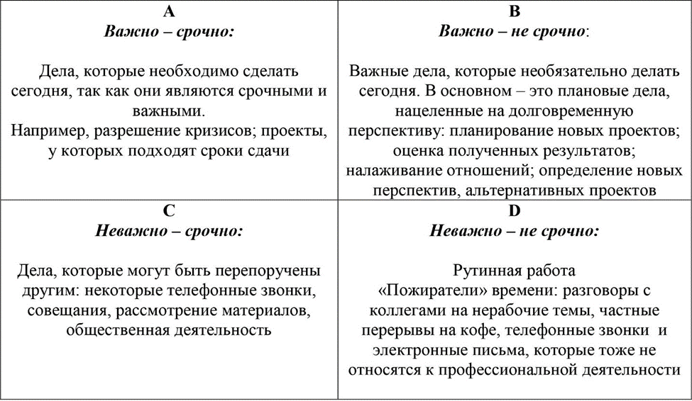 Бизнес в тапках Как работает Матрица Эйзенхауэра? 1. Срочные и важные задачи (A): Ага, вот они, пожары, которые надо тушить немедленно. Дедлайны, кризисы, всё, что заставляет вас нервно потеть. Например: сломался сервер, клиент орёт в трубку. 2. Несрочные, но важные задачи (B): Эти дела важны, но не требуют немедленных действий. Здесь планируем, учимся, улучшаем. Как говорил Эйзенхауэр, это путь к вашему долбаному успеху. Примеры: стратегическое планирование, профессиональное развитие. 3. Срочные, но неважные задачи (C): Срочность здесь обманчива. Подумаешь, звонки, которые можно проигнорировать, встречи, которые можно пропустить. Делегируем и забываем. Примеры: ненужные совещания, отвлекающие звонки. 4. Несрочные и неважные задачи (D): Это мусор. Соцсети, пустые разговоры, что угодно, что тратит ваше время. Избавьтесь от этого дерьма. Примеры: бесконечный скроллинг, болтовня ни о чём. Применение Матрицы Эйзенхауэра 1. Собираем задачи: Выписываем всё, что нужно сделать. Даже если это п