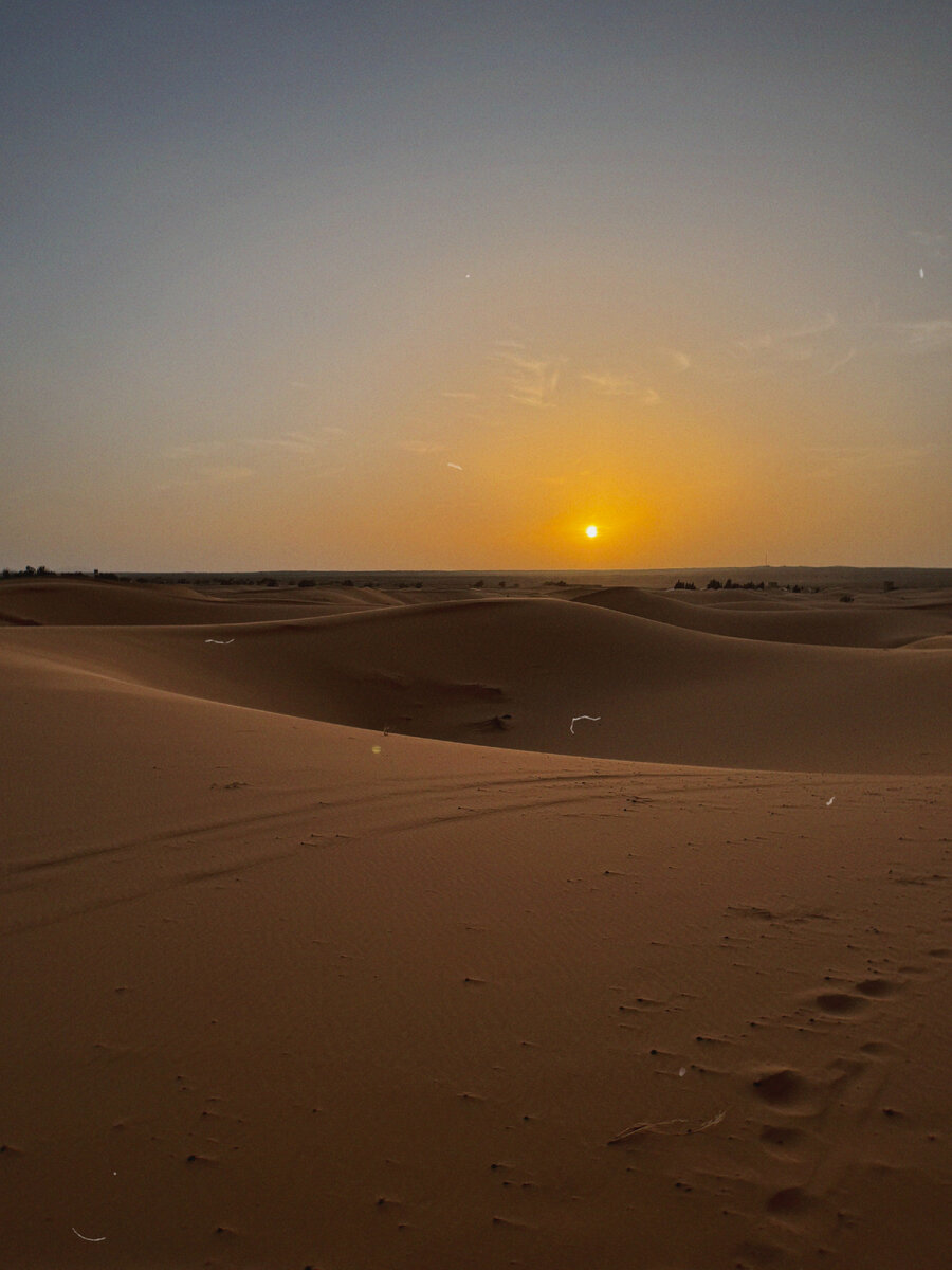 На майские праздники команда Poligraf Travel запланировала поездку в Марокко. Новое направление — это всегда неизвестность: что станет самым запоминающимся моментом, а что будет воспринято как незаслуживающее внимания. В Марокко было много интересных локаций, но еще больше переездов с места на место. Каждый день новый город и новый отель. В последний момент в программу решено было добавить ночь в пустыне Сахара, хотя путь до нее казался нелёгким. Во-первых, крюк от первоначального маршрута составлял 2 дня дороги. Во-вторых, ночёвка в пустыне вызывала вопросы. В-третьих, а на что там вообще смотреть!? Но несмотря на все сомнения, пустыня Сахара стала самым ярким впечатлением этого путешествия. «Мама, я в пустыне!» — хотелось кричать, как только мы увидели оранжевые барханы. Только представьте, Сахара занимает ¼ часть африканского континента и по праву считается самой большой и жаркой на нашей планете. Куда бы ты ни пошёл, куда бы ни упал твой взгляд – вокруг только пески, пески, пески.