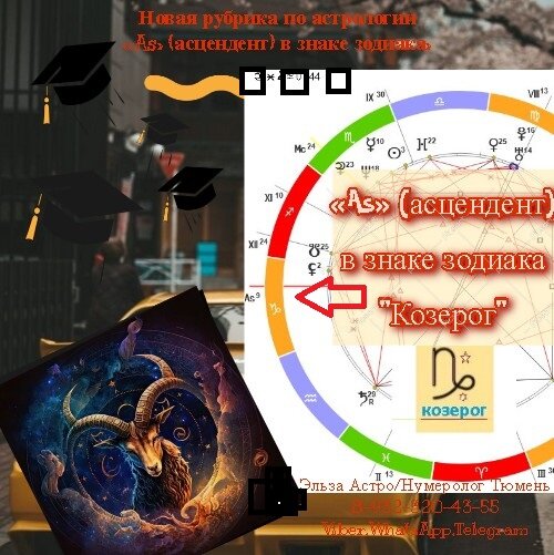 Обладатели «As» (асцендента) в знаке зодиака Козерог имеет худощавость как во внешности, так и в телосложении, например: выделяется костная структура (череп, кости, зубы, скелет) + возможно видны жилы (вены) и присутствие впалых щек в лице и сухость кожи. Общение – «специфичное», например: не моргает при разговоре (присутствие гипнотического эффекта), такое впечатление что в лице движутся только «губы», эмоции как правило скрыты. В начале жизни человек - «за коксован» (введет себя отстраненно), с годами прорабатывает подобное, чувствуя себя более комфортно. Внимание: данная характеристика может отличатся от вашей карты рождения, если в ваш первый дом попадают какие-либо планеты, линии (черные, красные), либо он является широким по отрезку по сравнению с другими домами, либо вообще некорректный (пораженный) дом и пр. и описать, к сожалению, все варианты - непросто, потому что в данный момент я предоставляю «лайт» вариант информации, чтобы у вас