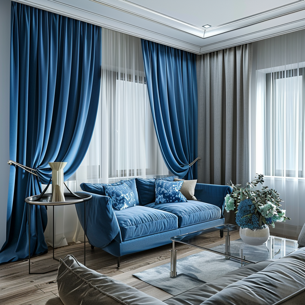 Холодная гамма цветов, такая как оттенки синего, зеленого и фиолетового, ассоциируется с природой и приносит ощущение свежести и спокойствия в помещение. Использование этих цветов в шторах поможет создать уютную атмосферу, особенно в теплое время года. Они могут создать ощущение прохлады и комфорта, что особенно важно в жаркие летние дни. 2. Гармоничное сочетание с другими цветами