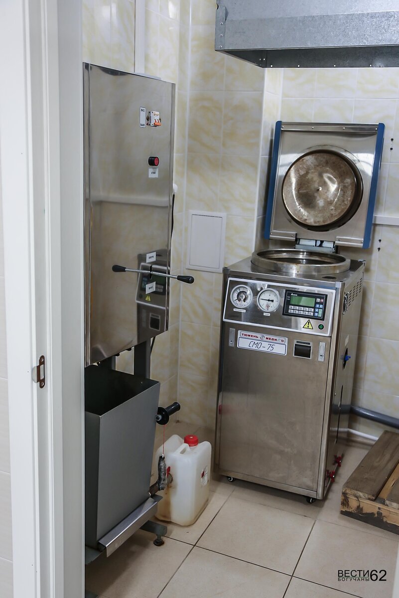 В больнице районного центра (одной из немногих в крае) организован участок утилизации отходов термическим способом, где расположена установка «Балтнер», состоящая из парового стерилизатора (автоклава). Там и происходит обеззараживание при температуре 110 градусов и давлении в 1,5 атмосферы в течение 60 минут. Далее – обезвреживание (чтобы сделать невозможным дальнейшее использование), которое происходит в прессе с силой давления в 300 килограмм. Так отходы становятся эпидемиологически безопасными, и дальнейшее их обращение ничем не отличается от обычных бытовых отходов.