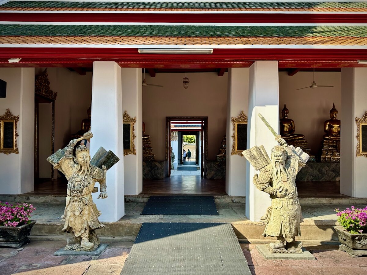 Рядом с Королевским дворцом в Бангкоке расположен ещё один храм – Ват Пхо, который в народе называют храмом Лежащего Будды. И это создает практически невыполнимую миссию – вроде кажется всё рядом (дворец, хра,м утренней зари и храм Лежащего Будды), поэтому логично запланировать их посещение в один день, но по факту все они внушительные по размерам, народу много, жарко, и буду честен – многочисленные ступы, статуи, золото и Будды под конец дня смешались у меня в голове и перед глазами в кашу. Так что разбирал я свои впечатления по храмам уже потом, отбирая фотографии и подбирая материал для этих статей. Ват Пхо (Wat Pho) занимает площадь более 80 тыс кв.м, это старейший храм Бангкока, который был построен при короле Раме I, когда тот решил перенести в Бангкок столицу из города Аютайя. На этой огромной территории находится много всего интересного – огромное количество статуй Будды (их здесь более тысячи!) и ступ (чеди). Чеди там реально выглядят, как грибы на полянке, и смотрятся они оче