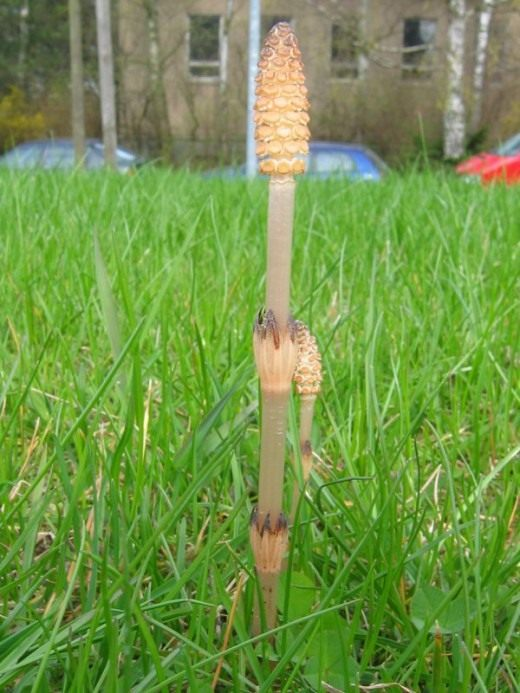 Дальше наступает у хвоща второй жизненный этап: начинают расти молодые позеленелые стебли, тянущиеся к солнцу и похожие на метелки (эти побеги обладают сильным целительным свойством).
