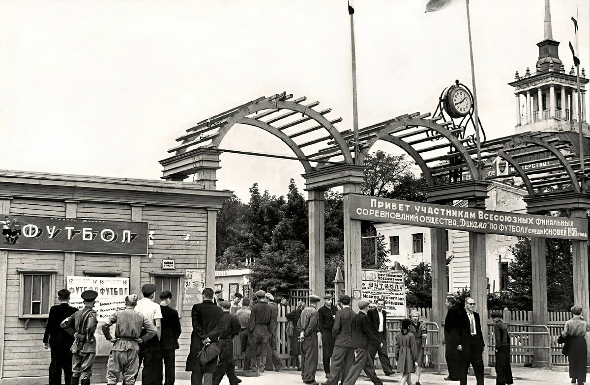 В 1955 году на «Динамо» была возведена еще одна трибуна, Западная, а еще с конца 40-ых годов на входе появилась гипсовая скульптура «Футболисты».