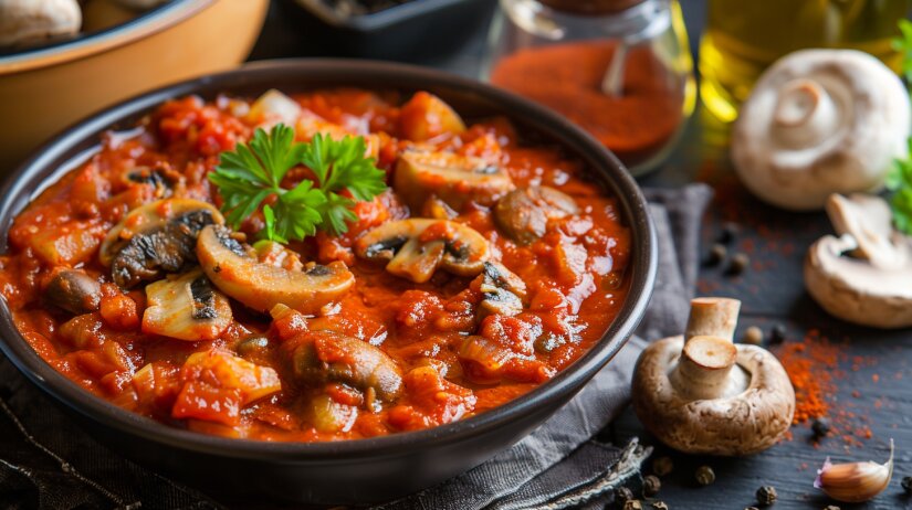 Красный соус с луком и грибами — это ароматное и насыщенное дополнение к множеству блюд. Его корни уходят в традиции европейской кухни, где соусы играют ключевую роль в создании гастрономической гармонии. Этот соус часто подают с пастой, мясом, особенно жареным или запеченным, и используют как основу для запеканок. Благодаря своему богатому вкусу и универсальности, соус приобрел популярность во многих странах мира. Ингредиенты Пошаговый рецепт Советы по хранению Сохраняйте соус в холодильнике в герметичном контейнере до 5 дней. Также его можно заморозить на срок до 3 месяцев. Перед использованием достаточно разогреть на плите. Полезные свойства основного ингредиента Томаты, являясь основным ингредиентом соуса, обладают высоким содержанием витамина C и антиоксидантов, включая ликопин, который способствует улучшению здоровья сердца и предотвращению некоторых видов рака. Интересные факты о соусе Использование грибов в томатных соусах — это отличный способ добавить насыщенности и умами в б