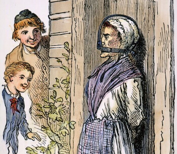 Опять его вызвали в магистрат. Его сварливая жена поругалась с соседкой, брань стояла на всю улицу, что не поделили эти злобные бабы, никто и не понял. Теперь его обязали надеть на жену уздечку. «Придержать ей язык», — как выразился противный секретарь в коричневой мантии. Вернувшись домой, плотник кулаками объяснил жене, какой позор она навлекла на себя и на него, кричал, что ее крикливый язык стоит вырвать, но пока что ей придется надеть маску позора. Утром на городской площади сварливой бабе надели на голову железную маску. Она сдавливала лицо и мешала женщине говорить. Так она должна была простоять несколько часов, пока мальчишки-хулиганы смеялись и показывали пальцами, а другие осыпали оскорблениями и ругательствами. Пережить такой позор было нелегко. Эти маски называли «Уздечка брани», и носить их должны были женщины, распускавшие свой язык, распространявшие сплетни или ругавшиеся неподобающими словами, а еще богохульницы или проповедницы ереси. Иногда «Уздечка брани» могла им