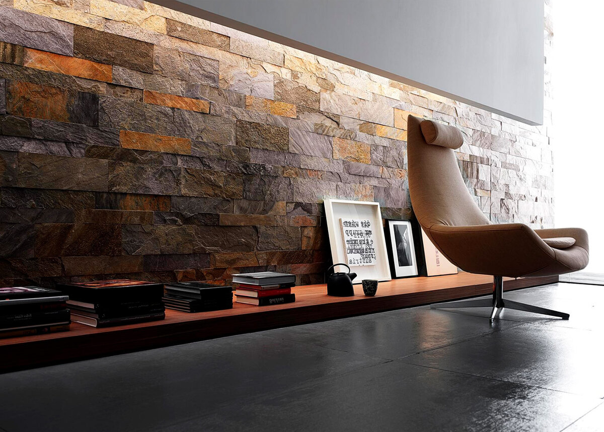 Сланец, без преувеличения, один из самых универсальных материалов. Этот натуральный камень широко используется для внешней и внутренней отделки, а еще для ландшафтного дизайна. Он отлично подойдет для облицовки стен в любых помещениях от прихожей до ванны, а также каминов, колонн, откосов и других поверхностей. Сейчас сланец находится на пике своей популярности и присутствует практически в каждом экодизайне.