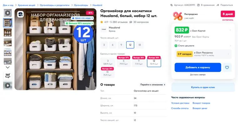 Стоимость набора зависит от количества контейнеров. Я брала набор из 16 контейнеров за 1500 ₽.