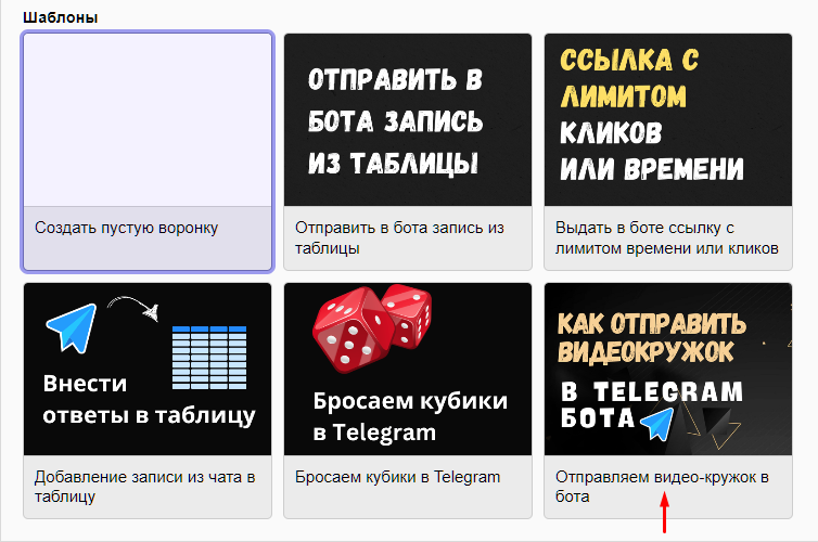 Также есть инструкция в видео-формате ↴ Бота в Telegram создадим с помощью бесплатного сервиса https://chatium.ru/start через модуль воронок. Если вы пользуетесь GetCourse, то точно такой же модуль доступен в рамках вашего GetCourse аккаунта. Для того чтобы бот мог отправлять кружки, можно воспользоваться шаблоном. Копируем шаблон * Перед вами встанет выбор, где его развернуть (В фреймворке Chatium или в GetCourse). Что бы вы ни выбрали, алгоритм не будет отличаться. *Первый блок содержит команду "/start", второй отправляет кружок Привязываем бота к шаблону Для начала необходимо привязать бота к сценарию, для этого: Подробнее про работу с BotFather и получение токена можно прочитать в этой статье или посмотреть в этом видео. Получив токен, вводим его в настройки шаблона: Записываем кружок Отправляем кружок через воронку Добавляем приветствие Чтобы бот молча не отправлял нам кружки, между запуском и отправкой кружка необходимо добавить приветствие, для этого: * {firstName}! - ваше имя
