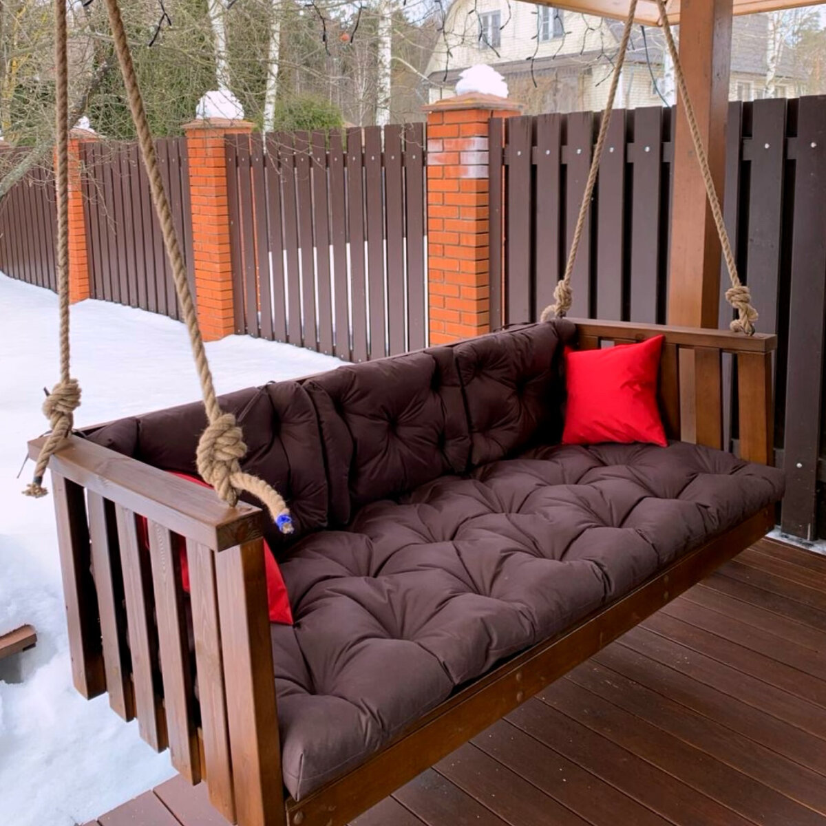 Не люблю хвалиться, вроде как это неэтично. Но все-таки рассказать вам сегодняшнюю историю хочется 😁 С прошлого года я сотрудничаю со швейной мастерской, которая отшивает для моих заказов текстильные комплекты на подвесные диваны. В прошлом сезоне я только присматривалась к новому сотрудничеству, поэтому заказов было не очень много. Но оценив качество исполнения, я добавила на свой сайт, причём на каждую страницу в разделе с качелями, возможность заказа текстильных комплектов. Ажиотаж в сезон бешеный и практически все качели, либо отдельные подвесные диваны теперь заказываются с комплектом текстиля - матрас, подушки на спинку и две маленькие подушечки. О ценах мы договорились заранее. Мне, как постоянному клиенту, сделали скидку, я, соответственно, продаю готовому клиенту по адекватной, но полной цене. Что получает человек? Комплект, сделанный из влагонепроницаемой ткани Оксфорд-600 в выбранном цвете по точным, а не стандартным размерам. А ещё можно выбирать внешний вид комплекта и н
