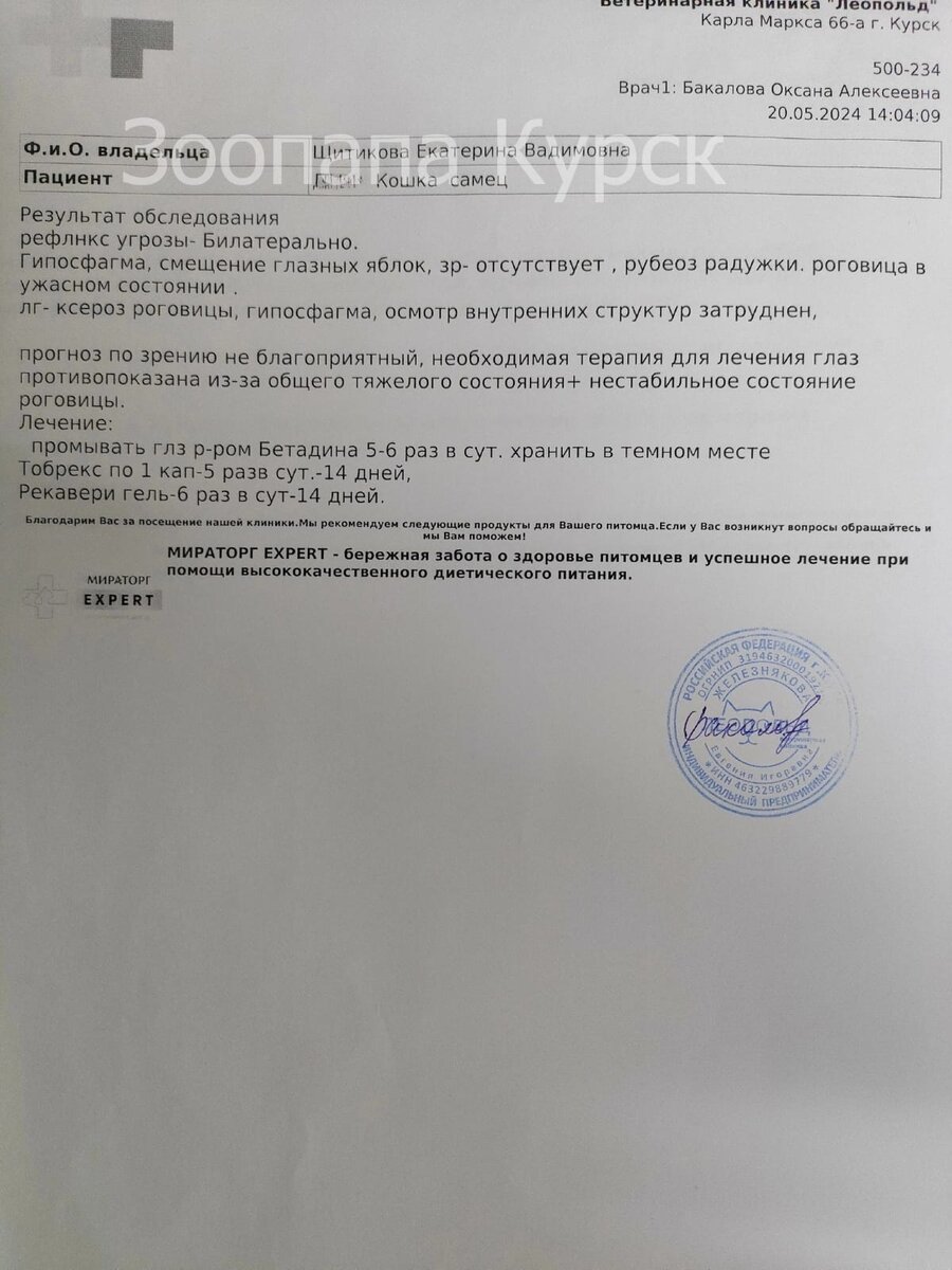 Здравствуйте, дорогие друзья, подписчики и гости канала. Эта статья будет про надежду, веру и борьбу. Недавно я рассказывала про котика, которого сбила машина. Кот в крайне тяжелом состоянии поступил в клинику. У него была сильная ЧМТ, треснуло верхнее нёбо, было выбито несколько зубов. В первый день коту стабилизировали его общее состояние. На второй день провели опepaцию - сшили нёбо, установили трахеостому, чтобы кот мог дышать, и гастростому, чтобы его можно было кормить. Из-за низких показателей гематокрита сделали переливание kр@ви. Осмотр офтальмолога подтвердил наши опасения. Прогноз по зрению не благоприятный. Один глаз скорее всего придется удалить. Назначены капли и мази для глаз. Вроде состояние стабильное, крайне тяжёлое, но стабильное. Каждый вечер я приезжала к котику, гладила его, говорила с ним, он же хоть и зверь, но понимает слова и ласку человека, как маленький ребенок. В один такой вечер, уходя, сказала котофею, что бы он меня дождался. Следующий день выдался дл