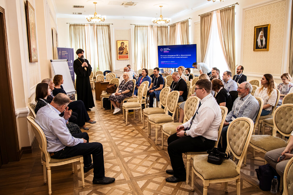 Протоиерей Геннадий Егоров согласился, что цифровое образование не всегда позволяет создать адекватную картинку, «реконструируя» образы учащихся, и именно в этой его части опыт очного образования нам не помогает (хотя в целом вопрос о том, как построить полноценную коммуникацию, остается проблемным и для очных занятий). Как охарактеризовали проблему участники из зала, вебинар для группы из 200 человек превращается практически в «спиритический сеанс», где преподаватель вынужден вызывать «души учащихся», не имея возможности составить о них какое-то представление по аватаркам. Прибавив к этой ситуации развитие ИИ, который студенты осваивают гораздо быстрее большинства преподавателей, участники секции задались вопросом, не начнут ли в скором времени ученики создавать свои цифровые аватары и делегировать им общение с преподавателем? Впрочем, ответ на это опасение нашелся опять-таки по аналогии с уже имеющимся опытом: никто не помешает студенту сейчас сдать работу, написанную соседом, так что самостоятельное участие в образовательном процессе – вопрос не технологий, а мотивации. Ведь среди целей, которыми руководствуются взрослые учащиеся, есть и запрос на формирование сообщества – поля для дискуссии, для рефлексии своего опыта, и тут сложно чем-то заменить человеческий компонент.