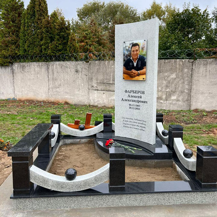 Мастера компании «Постамент» создали великолепный комплекс из габбро-диабаза и мансуровского гранита всего за два месяца. В его составе — красивые дугообразные поребрики в ограде, вогнутая стела, полукруглый постамент и цветник. Всё это выглядит очень изящно и привлекает внимание.