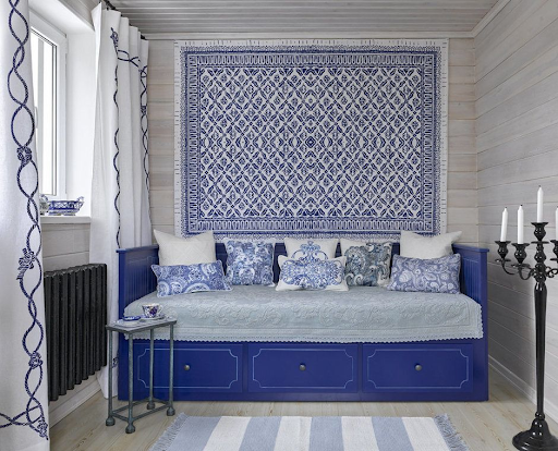 Особое внимание в доме уделено декору. Коллекция гжели, которую можно увидеть в кухне и гостиной, напоминает о традиционном русском промысле. Семейные фотографии, украшающие стены, создают ощущение дома, где чтут историю и традиции. Ковры с традиционным орнаментом добавляют уют и теплоту, характерные для русских домов.