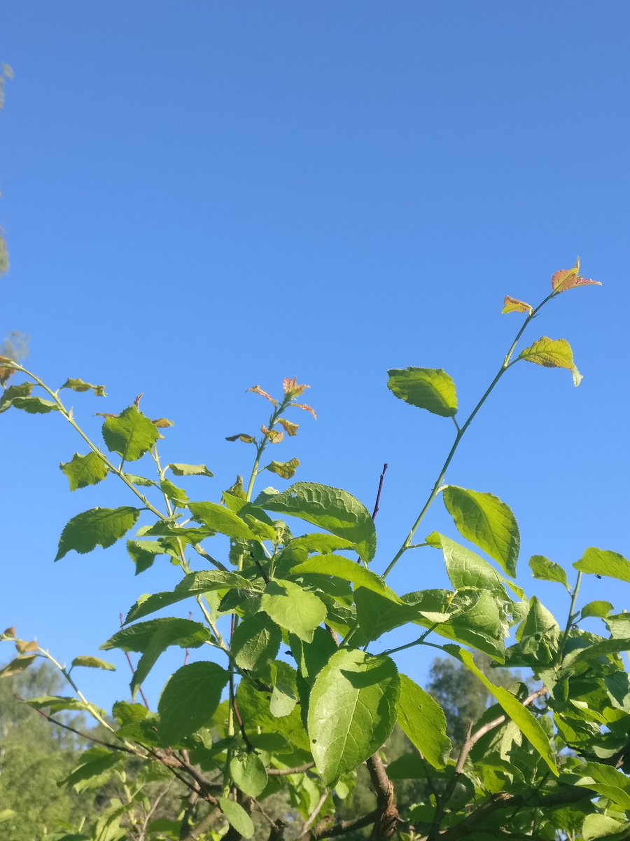 Кроме традиционного иван-чая, я готовлю чаи из молодых листочков плодовых деревьев и кустарников - груши, яблони, сливы, вишни, малины, ежевики. В этом году попробовала сделать из ирги. Начало лета для этого самое подходящее время. Я обрываю с деревьев молодые приросты.